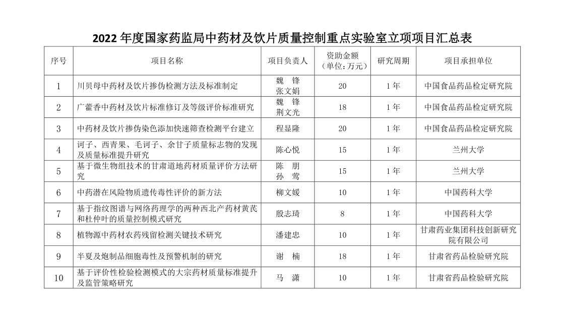 按照国家药监局中药材及饮片质量控制重点实验室2022年度工作计划,重点实验室紧紧围绕研究方向,结合2021年度研究工作情况,组织开展了2022年度科研项目申报工作。