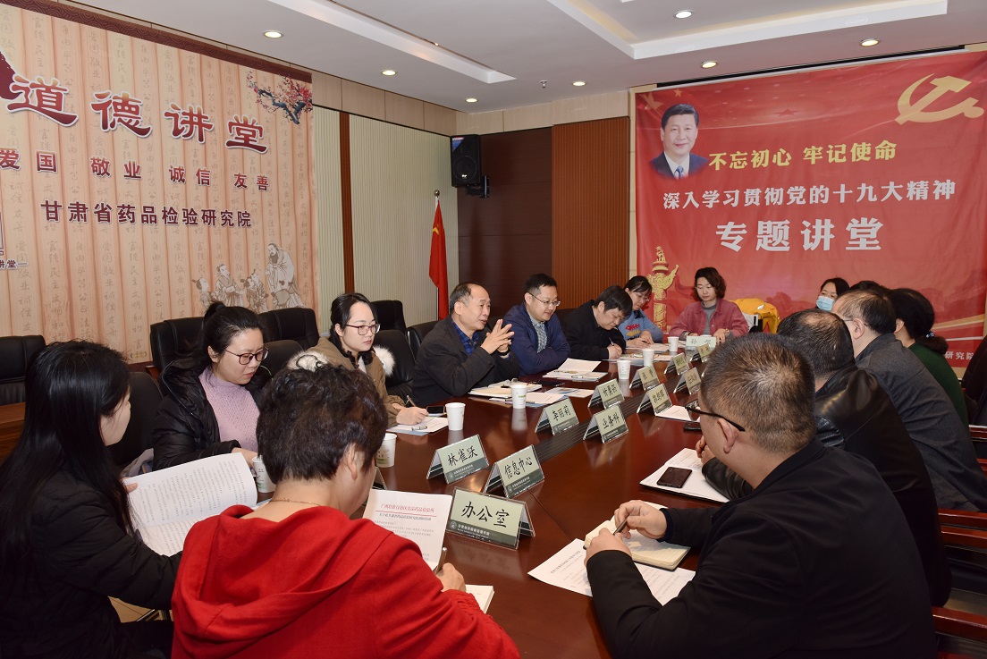 会上,郭朝晖对广西壮族自治区食品药品检验所同仁到我院调研交流表示热烈欢迎,并对我院在机构设置、检验检测、技术服务、人才培养、科研等方面的基本情况进行了简要介绍。信息中心负责人对我院信息化建设的硬件和软件部分、LIMS系统新旧版本使用经验感受、实验室电子记事本、仪器数据采集、数据库管理及维护等方面进行了全面介绍,对广西所同仁热切关注的问题进行了现场实地操作演示。中藏药室负责人对甘肃省道地药材区域分布、品种种植、产量、产业发展状况进行了详细介绍,重点就我院在省药监局的大力支持下,在促进道地药材产业发展优质化方面开展的道地药材质量评价、标准制定、外源性有害残留、关键分析检测技术及监管科学等科研工作以及目前已取得的重要成果进行了重点介绍。并就我省在中药材资源保护、产业科学化发展等方面遇到的困难和瓶颈同广西所同仁进行了深入的探讨和交流。