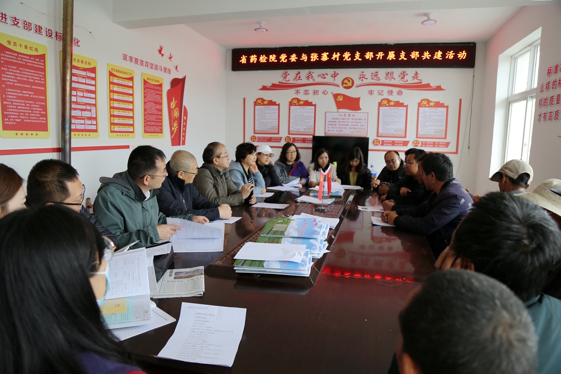 活动中,省药检院党委和张寨村党支部开展了支部共建主题党日活动,药检院党员和张寨村党员结合各自实际和专长,就如何在脱贫攻坚收尾工作中发挥党员先锋模范作用进行了讨论,明确各自职责,实实在在做实事做好事,扎实推进脱贫攻坚工作取得胜利。同时,北京鉴知技术有限公司王红球经理向村委会介绍了甘肃省药检院、陇西保和堂和北京鉴知技术有限公司三方联合开展的研究项目。该项目是在清华大学的指导下,利用红外光谱和拉曼光谱技术,对道地药材进行真伪鉴别及溯源研究。项目成果将应用于我省道地药材地方标准制定中,对保护道地药材高质量发展,助力脱贫攻坚具有非常重要的意义。