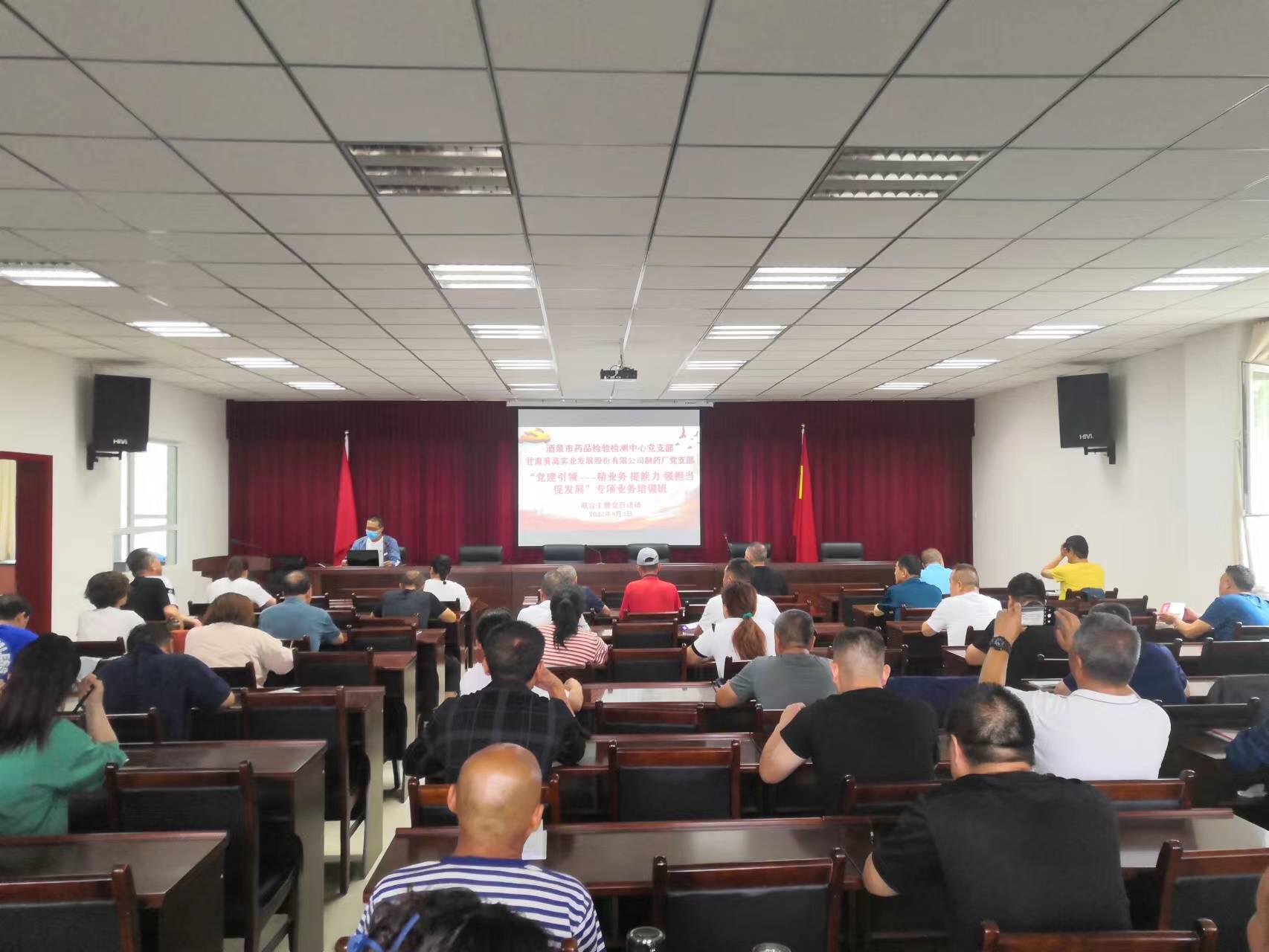 为深入贯彻落实习近平总书记提出的“疫情要防住、经济要稳住、发展要安全”的总体要求和省第十四次党代会精神,8月2日至3日,酒泉市药品检验检测中心精准对接企业技术需求,选派技术骨干赴甘肃莫高实业发展股份有限公司制药厂,举办“党建引领—精业务、提能力、强担当、促发展”专项业务培训班,解决企业在药物警戒、药品检验及GMP规范等方面的实际问题,助力本地药品生产企业高质量发展。此次培训班累计受训提高150人次。