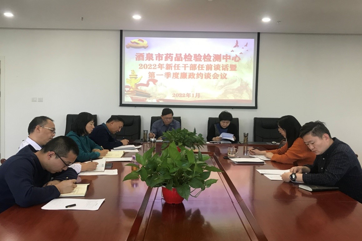 1月19日下午,酒泉市药品检验检测中心召开新任职干部任前谈话暨第一季度廉政约谈会。中心党支部书记、主任郭华荣、党支部副书记、副主任陈卫英及6名科级干部参加会议。