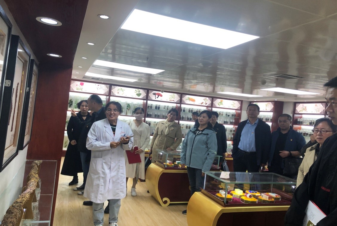 在中心主任郭华荣的带领下,大家听取了市药检中心的机构职责、人员结构、历史沿革、文化建设、仪器配备、科研、取得系列荣誉等。随后参观了中药标本馆,在工作人员的讲解下了解了酒泉道地药材、甘肃省道地药材、全国中药材分布、真伪药材标本、动植物生态园等名贵特色药材标本。