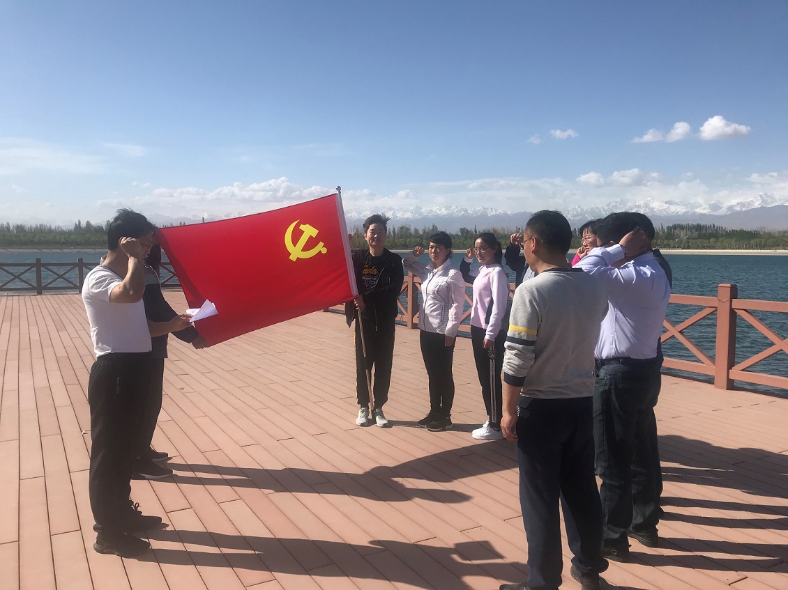 重温入党誓词,坚定向党初心。在美丽的湖水边,在鲜红的党旗下,全体党员佩戴党员党徽,举起右手、握紧拳头,庄严宣誓。在党旗下接受心灵的净化和洗礼,牢记共产党员的初心和使命。