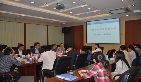研究生答辩会由我院副院长,硕士生导师杨锡主任药师主持。答辩委员会组成人员有兰州大学药学院李冲教授、甘肃省食品药品监督管理局副局长、硕士生导师丁永辉教授;甘肃省肿瘤医院石晓峰主任药师;兰州军区药品检验所赵兴红主任药师;我院赵建邦、杨锡、宋平顺主任药师共7位专家组成,李冲教授担任此次答辩委员会主任委员。此外,我院杨平荣院长全程参加答辩会议,并于会议之初致开幕词,感谢各位答辩委员会专家的光临指导,并充分肯定了这几年我院研究生培养的工作和成绩。
