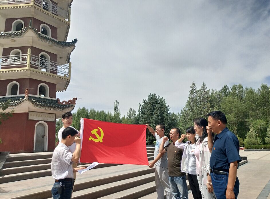 三是重温一次入党誓词。全体党员赴瓜州县参观了红西路军安西战役纪念馆,切身感受了红西路军将士在安西那段悲壮惨烈、可歌可泣的历史。全体党员在庄严肃穆的西路军纪念塔前,面对鲜红的党旗,佩戴党徽,举起右手、握紧拳头,庄严宣誓,在党旗下接受心灵的净化和洗礼,深刻感受革命英烈对理想信念的崇高追求。